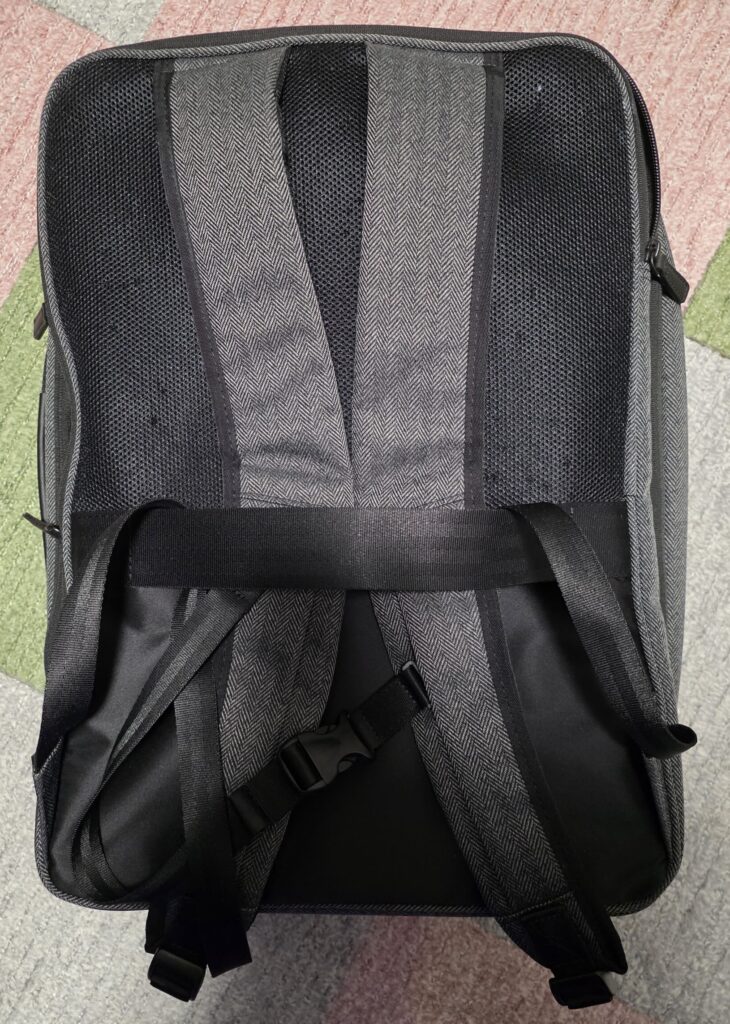 出張時には、キャリーバッグのバーハンドルにこのリュックを固定して移動しています。空港や駅での移動が格段に楽になり、「この機能があって本当に良かった」と実感しています。