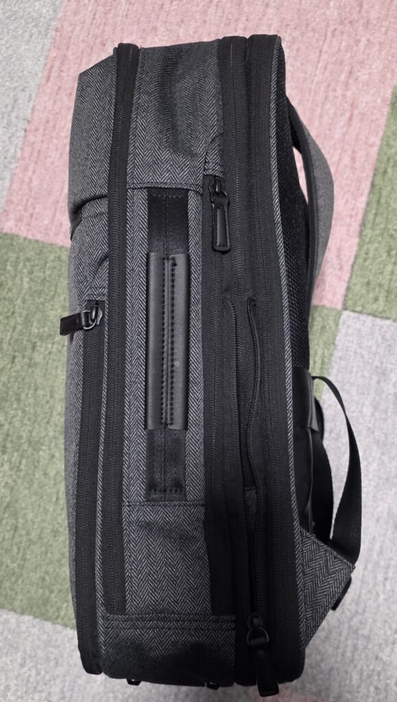 約1年間使い続けた結果、このリュックを選んで本当に正解だったと確信しています。特に、出張時のキャリーバッグとの併用2WAYスルーポケットは、購入前に想像していた以上に便利で、手放せない機能になっています。
