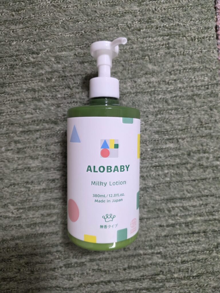 出産前、いくつかのベビーローションをサンプルで試しましたが、最終的にアロベビーを選びました。