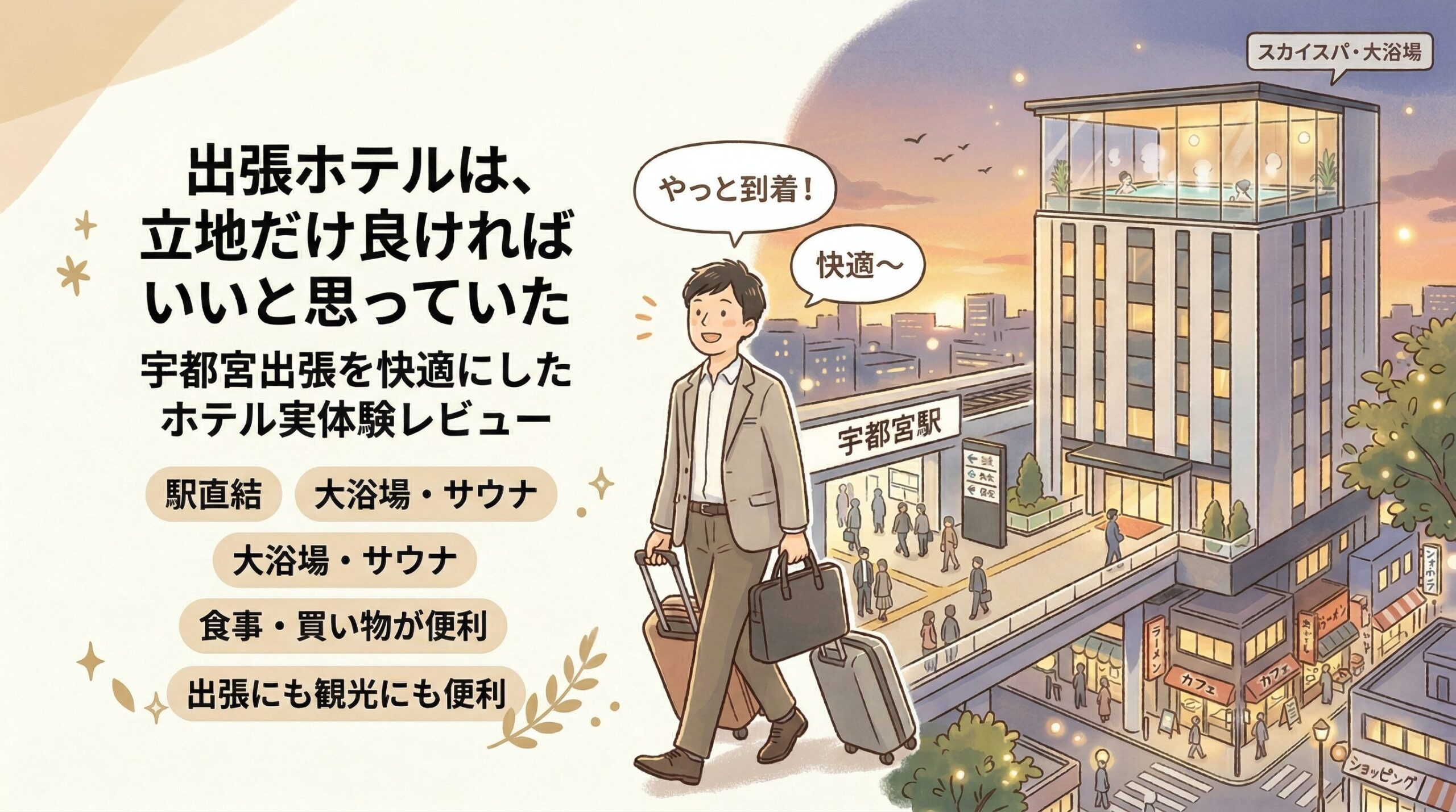 この記事では、駅直結の便利さ、宇都宮テラス内の買い物・飲食環境、最上階の大浴場、そして後泊で楽しめる観光先まで含めて、「宇都宮出張で選ぶ価値があるか」を実体験ベースで整理します。