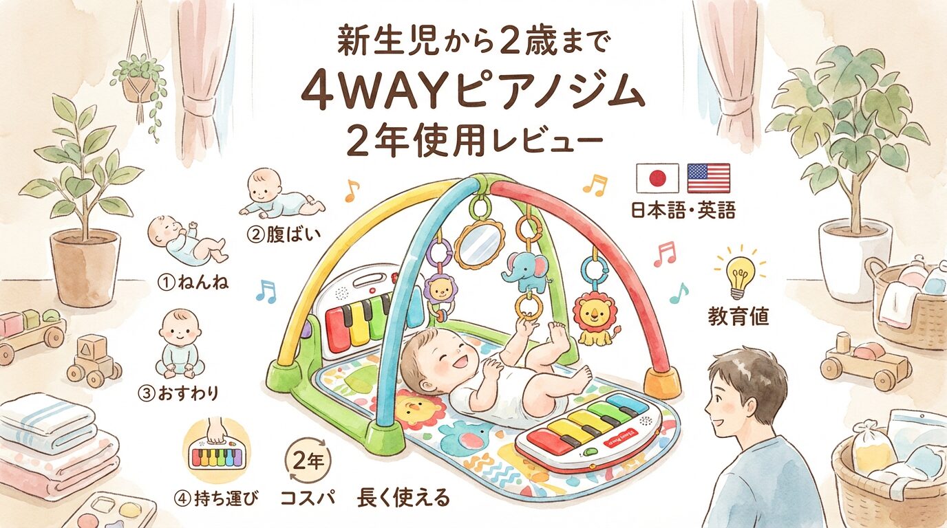 フィッシャープライス「あんよでキック!4WAYバイリンガル・ピアノジム」を2023年12月に購入し、2025年12月現在まで約2年間使用した結果、この選択は間違っていなかったと確信しています。