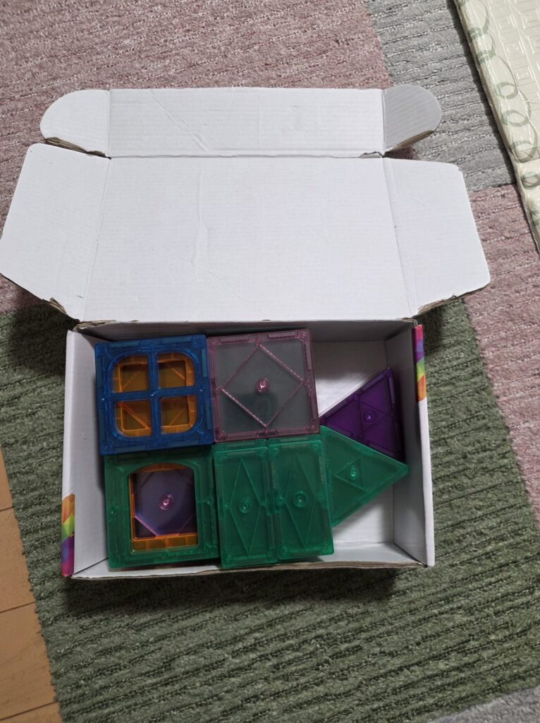 最も感心したのは磁力のバランスです。2歳の娘でも簡単にくっつけられる程度でありながら、積み上げても崩れにくい強度を保っています。普通の積み木と違い、「ピタッ」とくっつく感覚が娘には非常に魅力的なようで、何度も繰り返し遊んでいます。