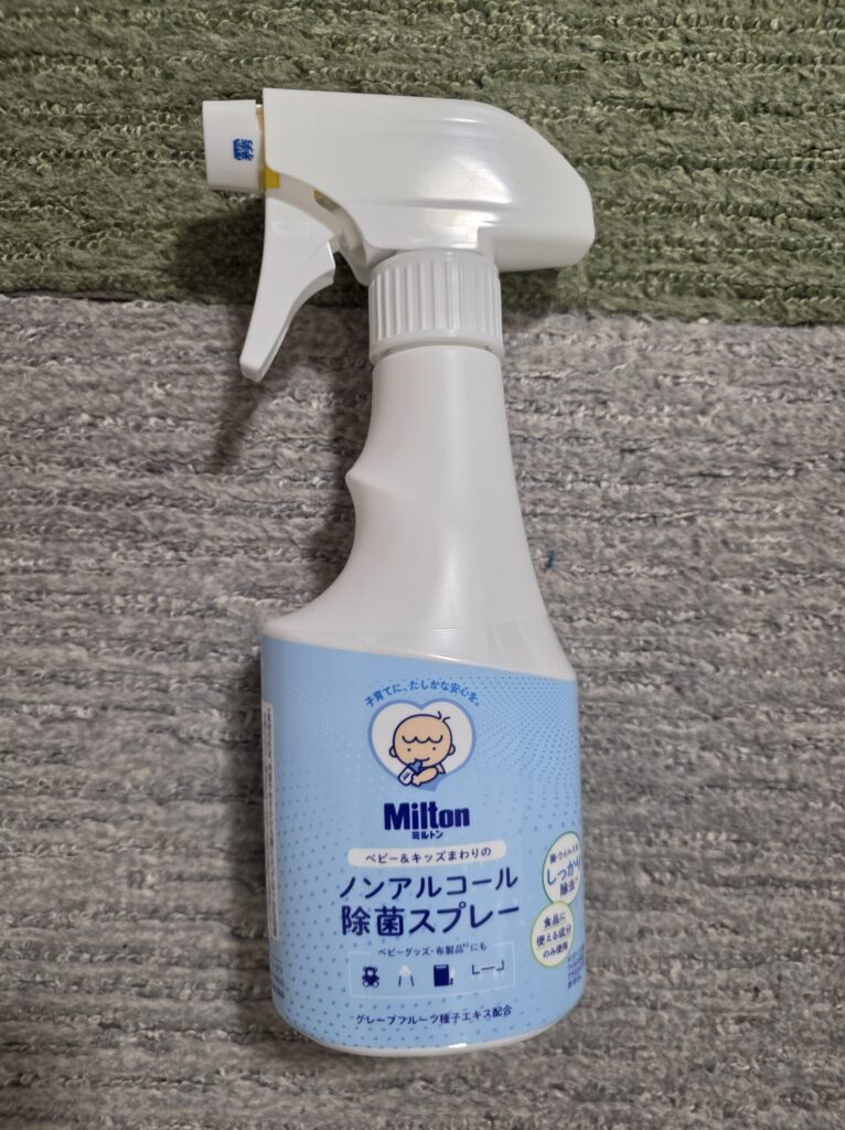 ミルトン除菌スプレーはノンアルコールなので、「口に入れても大丈夫」という安心感があります。