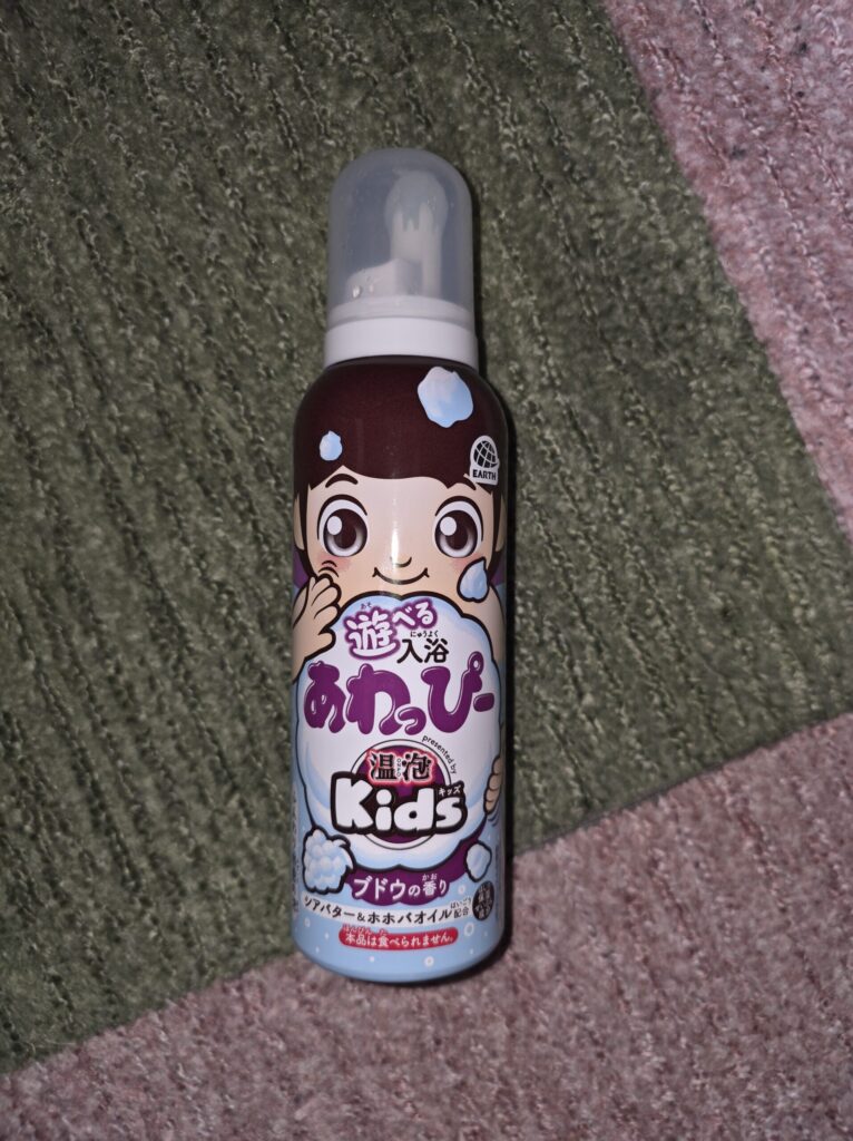 週に1回は必ずこの言葉を聞いていた我が家。ピカチュウのみずでっぽうだけではなく、何か別の楽しみを与えてあげたいなと思っていました。そこで出会ったのが、温泡キッズ あわっぴー(ブドウの香り)です。