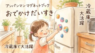 シールブック代わりに購入したアンパンマンマグネットブック「おでかけだいすき!」を1ヶ月使用した本音レビュー。2歳児の反応、冷蔵庫活用法、シールブックとの違い、何度も貼れる経済性を徹底評価。