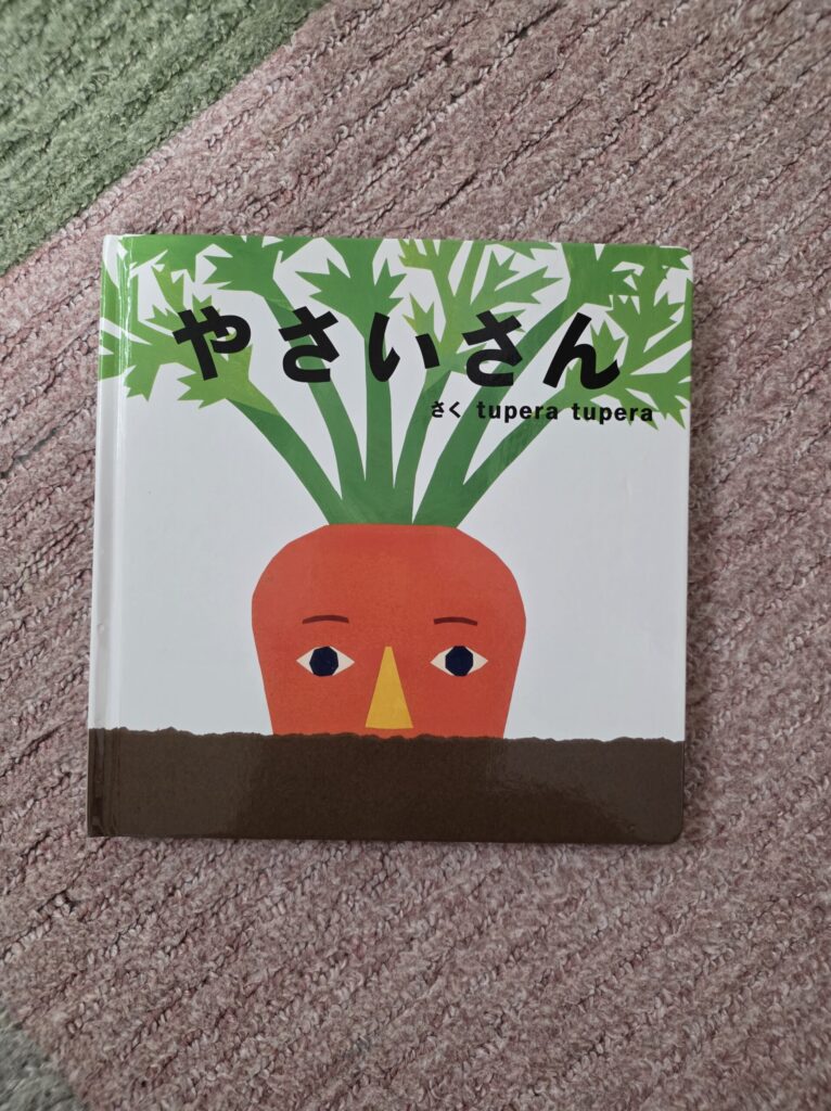 絵本を通じて野菜の名前を覚え、実際の野菜を見たときに「やさいさん!」であったり、「にんじんさん」と反応するように。食育の入り口として機能しています。